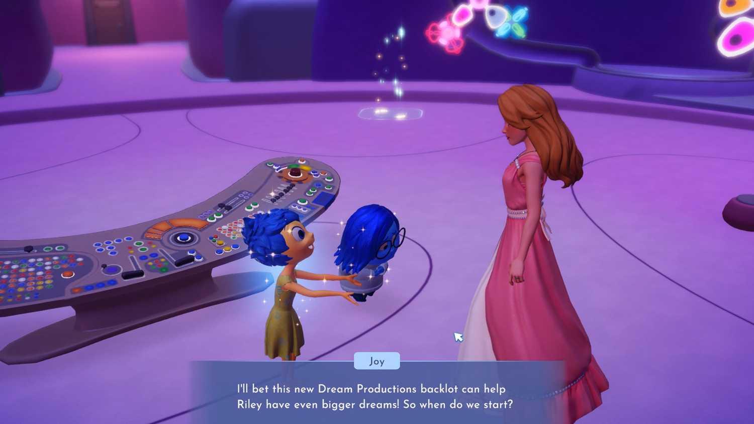 - Follow Joy through a portal to the Dream Production space.